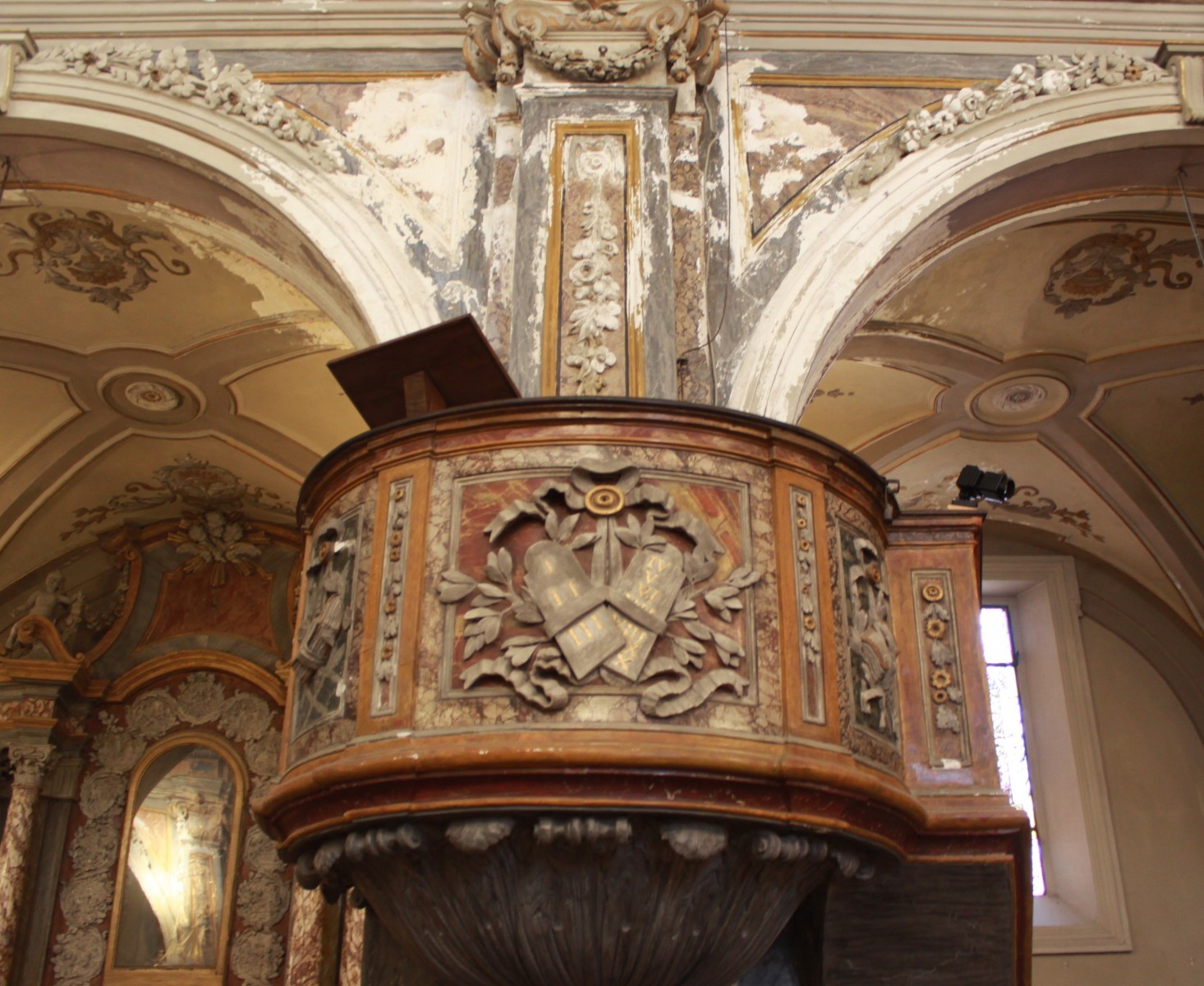 Restauro dell’apparato decorativo interno della chiesa, restauro di due tele, manutenzione straordinaria delle facciate e della copertura del campanile e della facciata laterale Est della Chiesa
