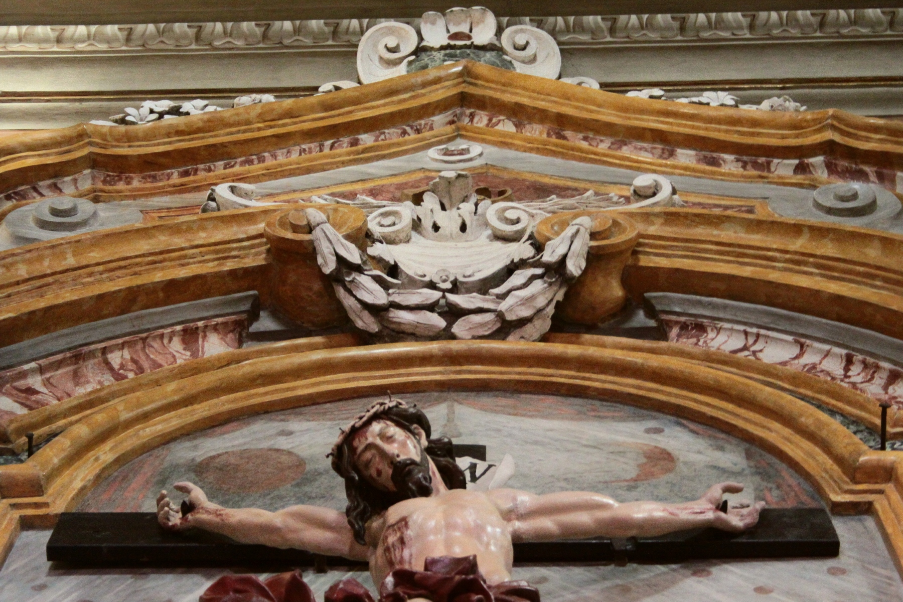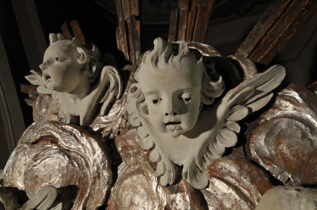 restauro e consolidamento della facciata e delle cappelle di controfacciata, consolidamento strutturale delle capriate lignee e manutenzione straordinaria della copertura, rifacimento della pavimentazione del sagrato con recupero delle lose antiche, restauro conservativo dell’intero apparato decorativo interno, degli altari in stucco e marmorei e delle tele della scuola del Baumont.