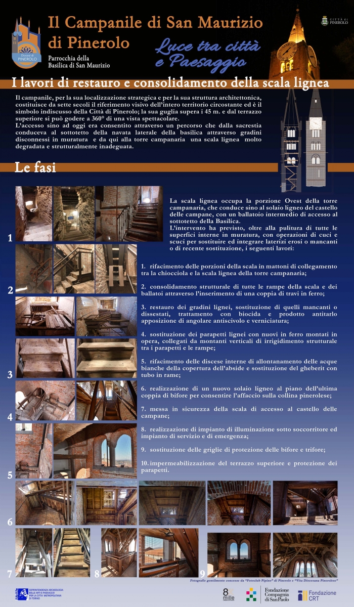 Manutenzione straordinaria della copertura dell’abside e manutenzione straordinaria dell’interno della torre campanaria per rendere accessibile la scala interna sino al nuovo piano panoramico.